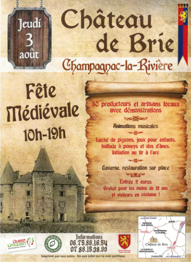 Le jeudi 3 août, participez à la Grande Fête Médiévale du Château de Brie à Champagnac-la-Rivière et plongez dans l’ambiance du Moyen-Âge